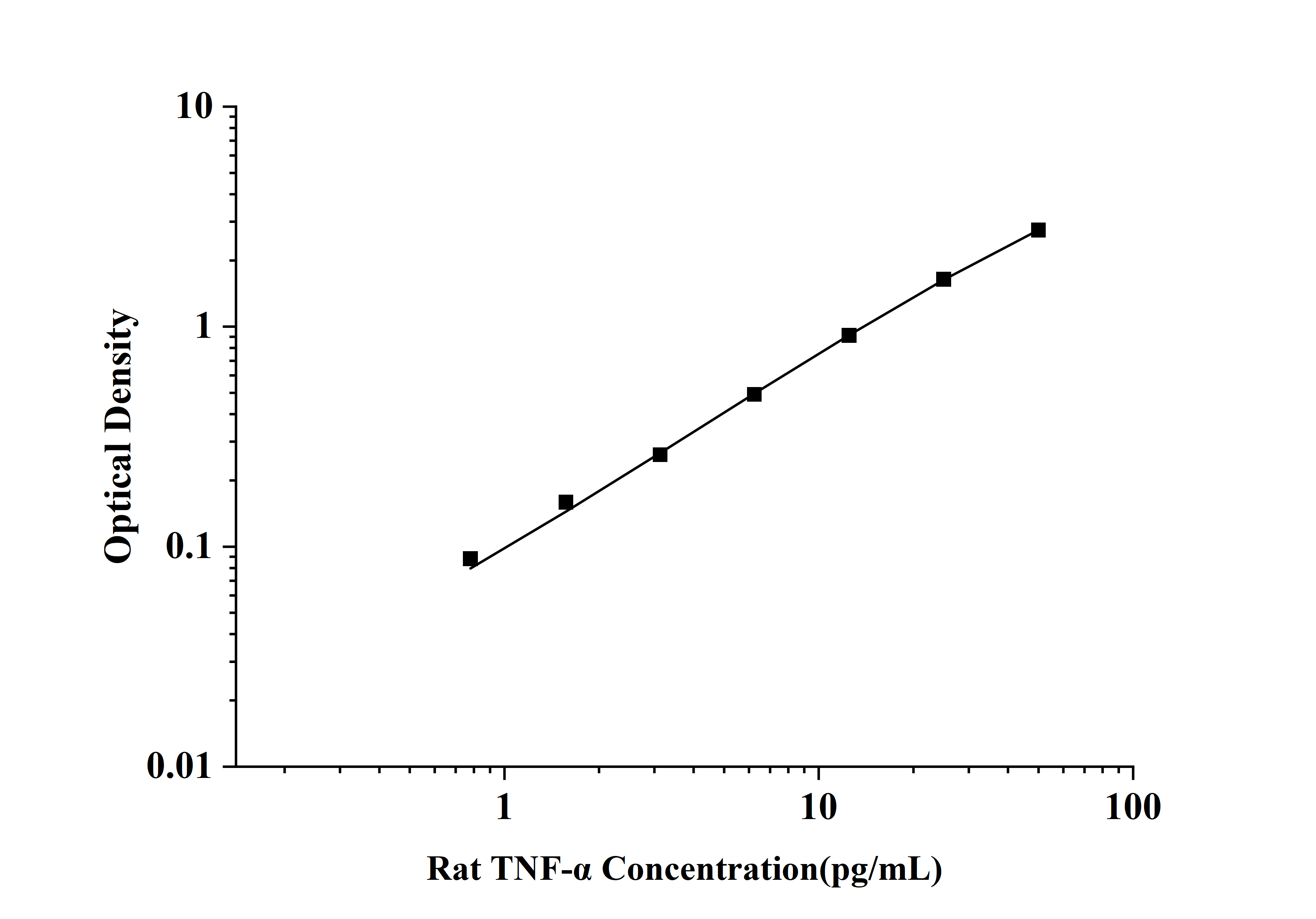由于实验操作条件的不同(如操作者、移液技术、洗板技术和稳定条件等),标准曲线的OD值会有所差异。以下数据和曲线仅供参考,实验者需根据自己的实验建立标准曲线。