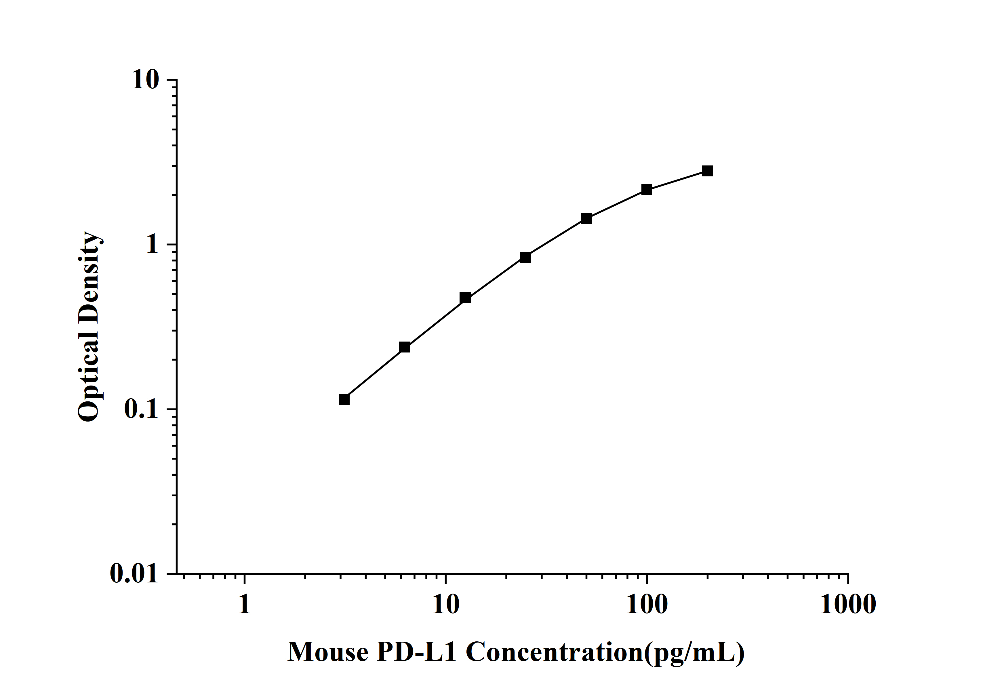 | 测试原理 | 本试剂盒采用双抗体夹心ELISA法。用抗小鼠PD-L1抗体包被于酶标板上,实验时样品或标准品中的小鼠PD-L1会与包被抗体结合,游离的成分被洗去。依次加入生物素化的抗小鼠PD-L1抗体和辣根过氧化物酶标记的亲和素。抗小鼠PD-L1抗体与结合在包被抗体上的小鼠PD-L1结合、生物素与亲和素特异性结合而形成免疫复合物,游离的成分被洗去。加入显色底物(TMB),TMB在辣根过氧化物酶的催化下呈现蓝色,加终止液后变成黄色。用酶标仪在450nm波长处测OD值,小鼠PD-L1浓度与OD450值之间呈正比,通过绘制标准曲线计算出样品中小鼠PD-L1的浓度。 | ||