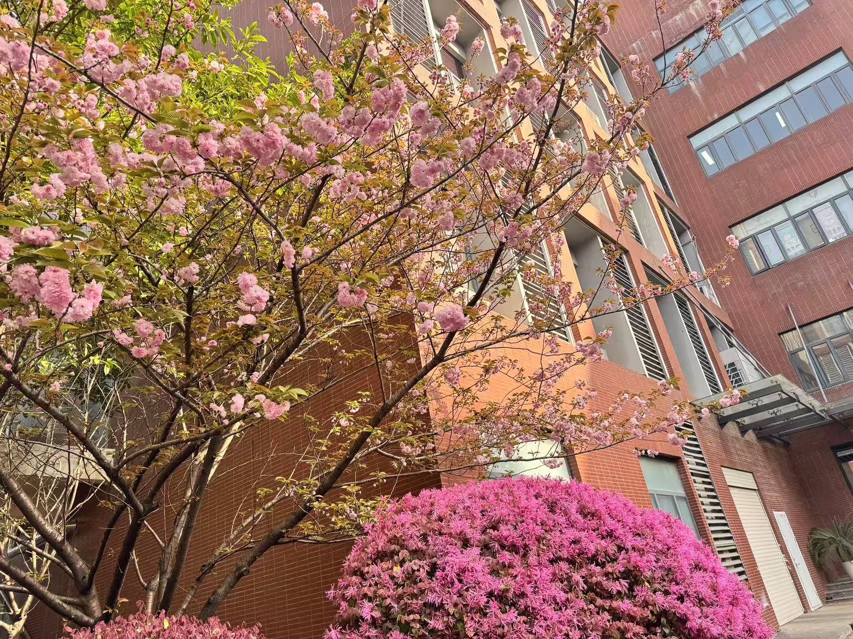 漫步在樱花树下,空气中弥漫着淡淡的花香,甜而不腻,清新宜人,仔细端详,每一朵樱花都精致无比。五片花瓣簇拥着鹅黄色的花蕊,花瓣白里透粉,粉中带红,像是少女羞涩的红晕。“等闲识得东风面,万紫千红总是春。”热闹的生物城不仅有浪漫的樱花主场,还有各种繁花的点缀,有热情的红、高贵的紫、清新的黄,每一朵都散发着迷人的魅力.