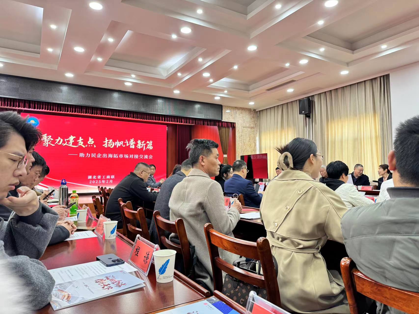 2025年2月26 日,湖北省工商联在武汉召开“助力民企出海拓市场对接交流会”,深入贯彻落实习近平总书记关于民营经济发展的重要讲话精神,积极响应省委号召,助力民营企业开拓国际市场,推动民营经济高质量发展。