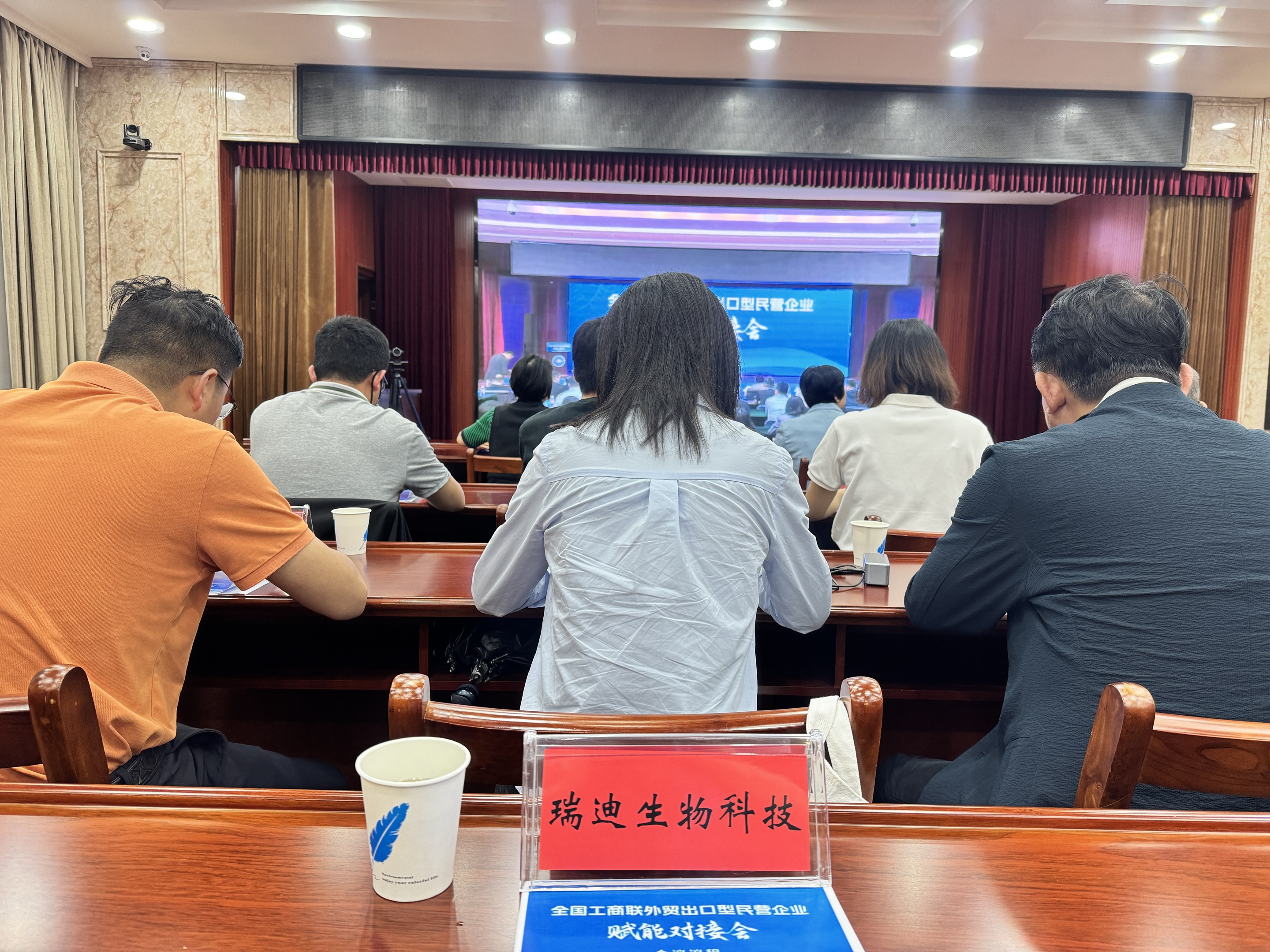 2025年5月8日,由全国工商联主办的“外贸出口型民营企业赋能对接会”在京召开,全国工商联党组成员(正部长级)王受文部长、全国工商联党组书记沈莹全程指导,商务部、市场监管总局、工商银行等核心部门负责人及京东、抖音、阿里巴巴、物美集团等商业领袖齐聚。武汉作为分会场通过连线北京主会场参与学习与讨论,瑞迪生物科技作为生物行业代表受邀参会,本次会议通过政企银商四方联动的形式,共同探讨与解码政策红利,助力民营企业开辟高质量发展新路径。