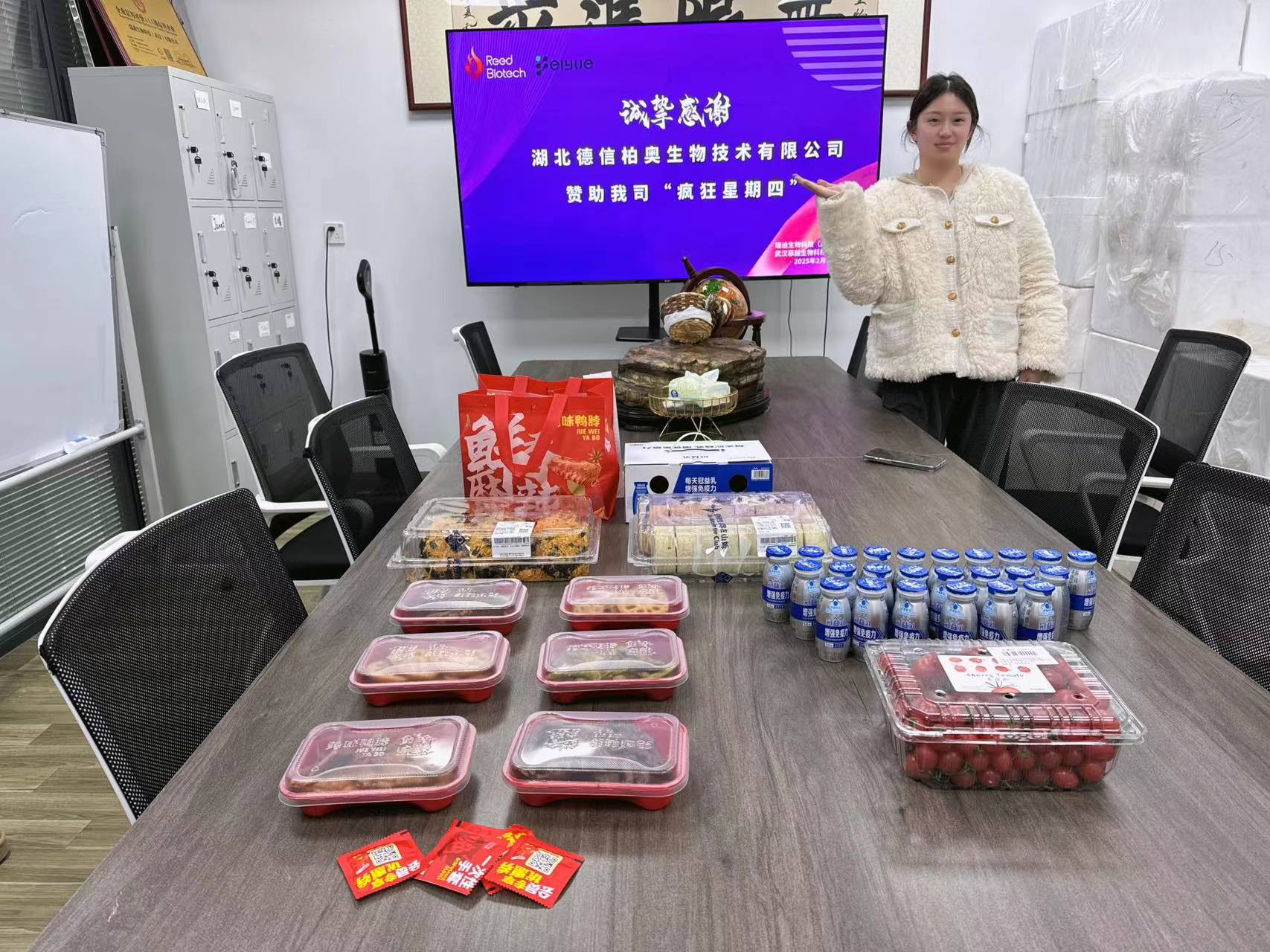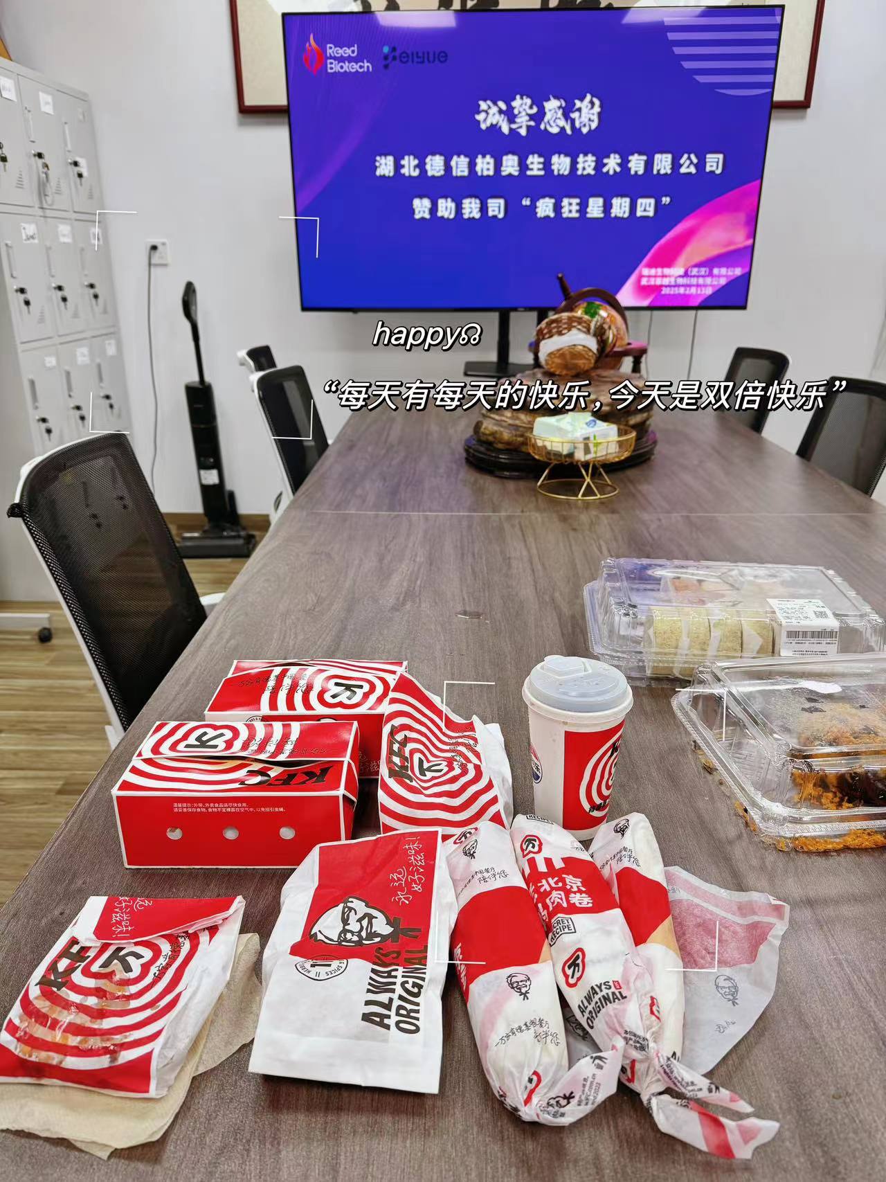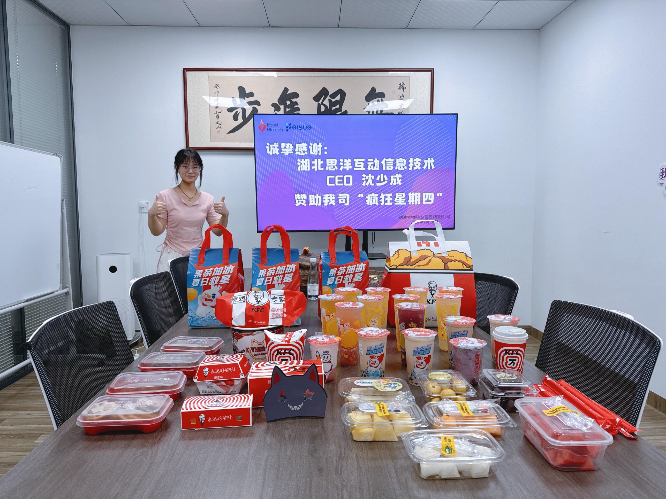 "疯狂星期四“活动也是大家一周里最期待的一天之一,大家在轻松愉悦的氛围中分享着精致的点心、新鲜的水果、美味的咖啡与饮料,每一样都精心准备,每一样都承载着赞助者的深情厚意,同事们在品尝美味的同时,也享受着交流的乐趣,分享着快乐与趣事。