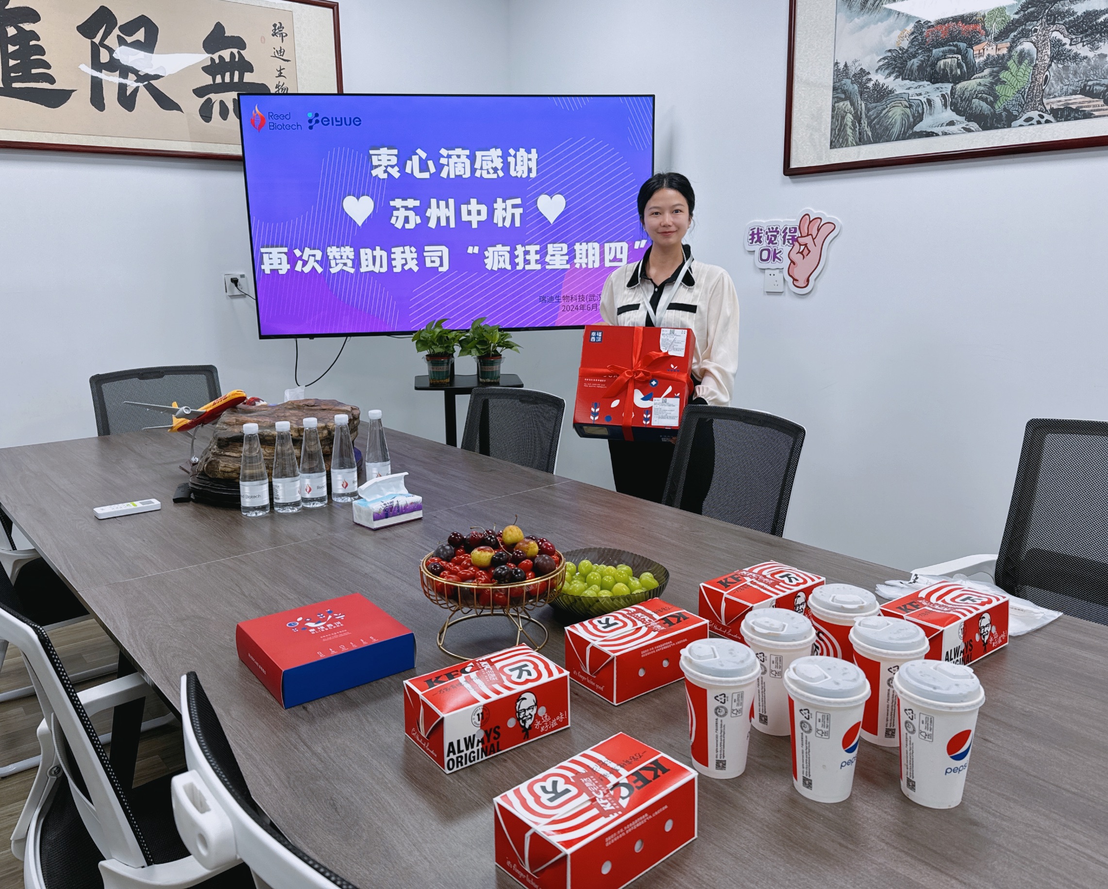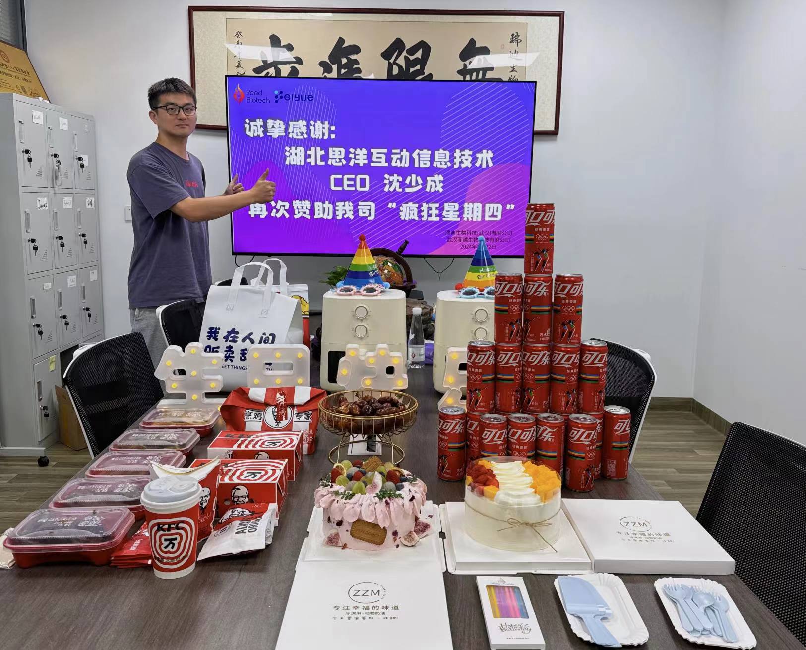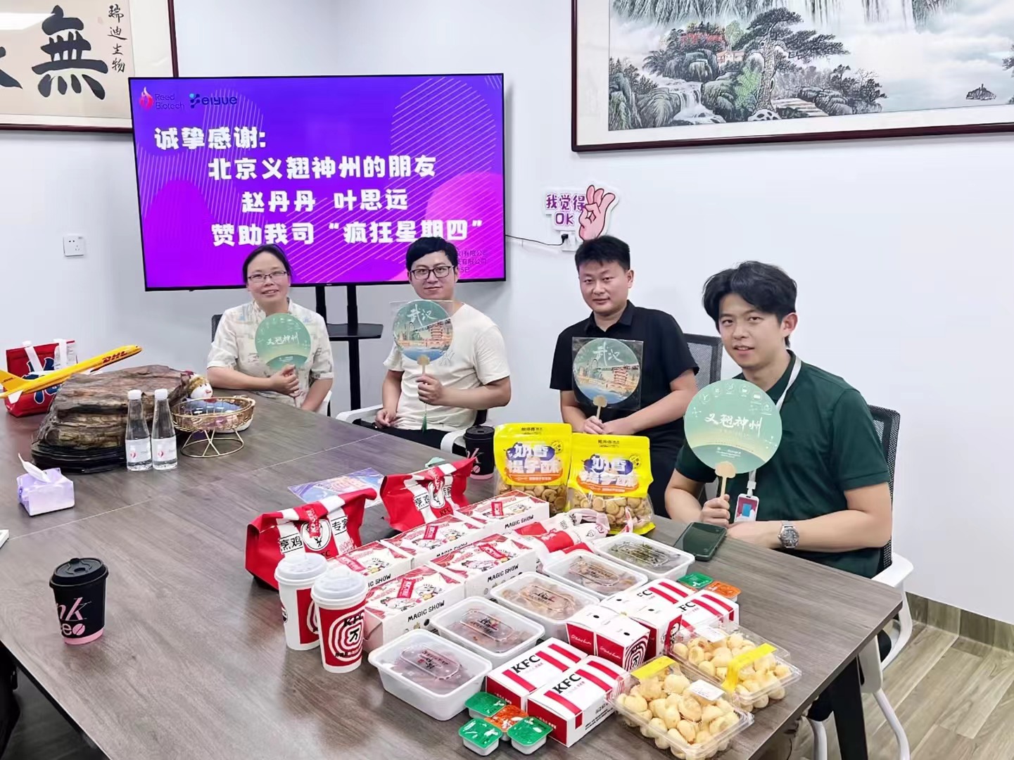 "疯狂星期四“活动也是大家一周里最期待的一天之一,大家在轻松愉悦的氛围中分享着精致的点心、新鲜的水果、美味的咖啡与饮料,每一样都精心准备,每一样都承载着赞助者的深情厚意,同事们在品尝美味的同时,也享受着交流的乐趣,分享着快乐与趣事。
