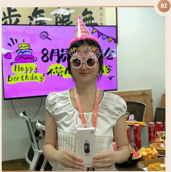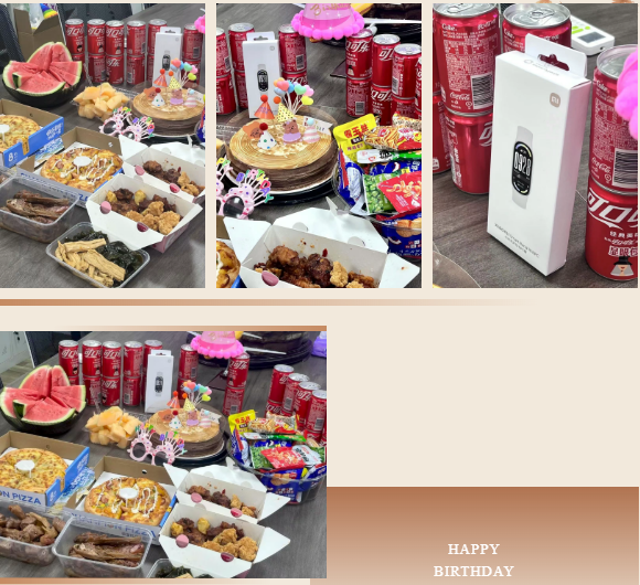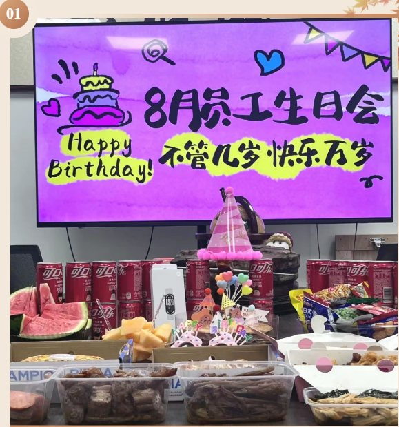 桌上摆满丰富的水果与精致茶歇:爆汁解暑的瓜果、清凉可口的果饮、琳琅满目的美食,每一个细节都诉说着瑞迪对寿星们浓浓的关爱。