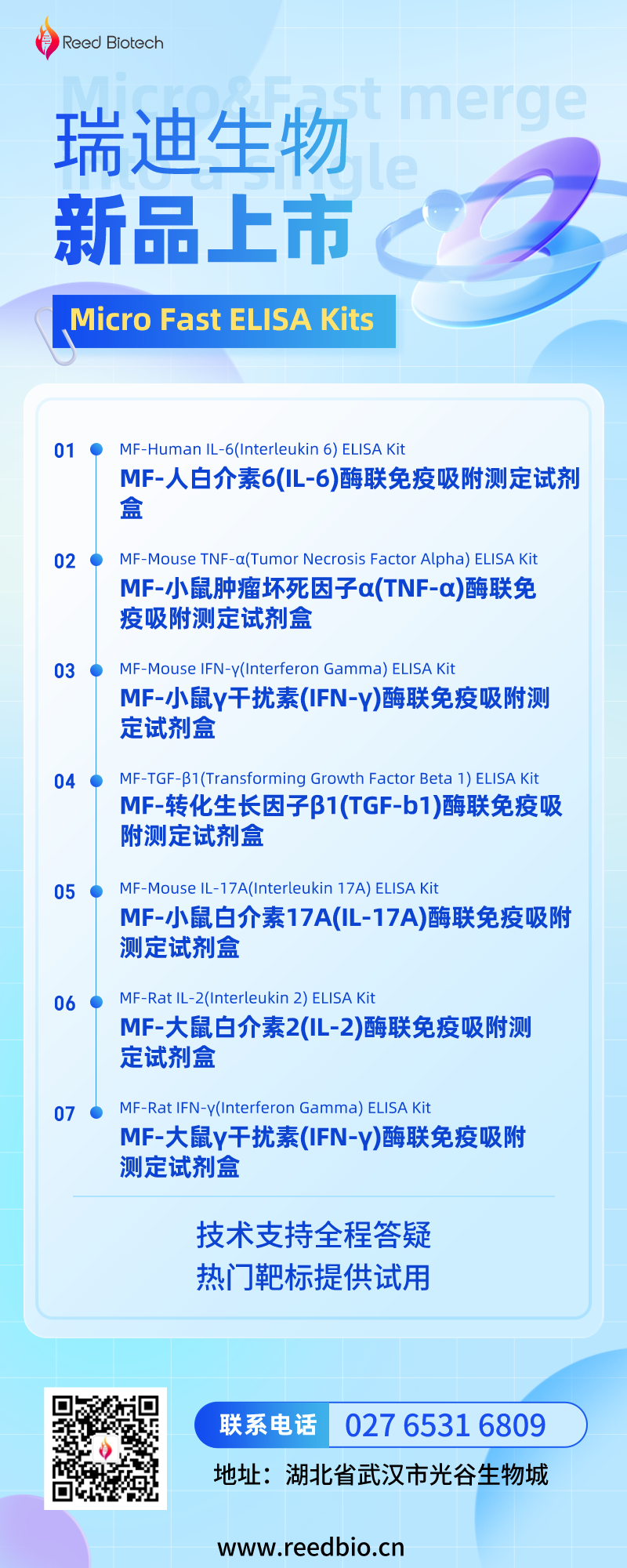 瑞迪生物秉承以客户需求为纲的市场理念,在常规ELISA试剂盒的基础上,开发了Micro Fast(简称MF)系列,又不断创新,开发出了高敏系列的ELISA试剂盒产品,以满足客户的需求。以下为上述指标相应的产品信息: