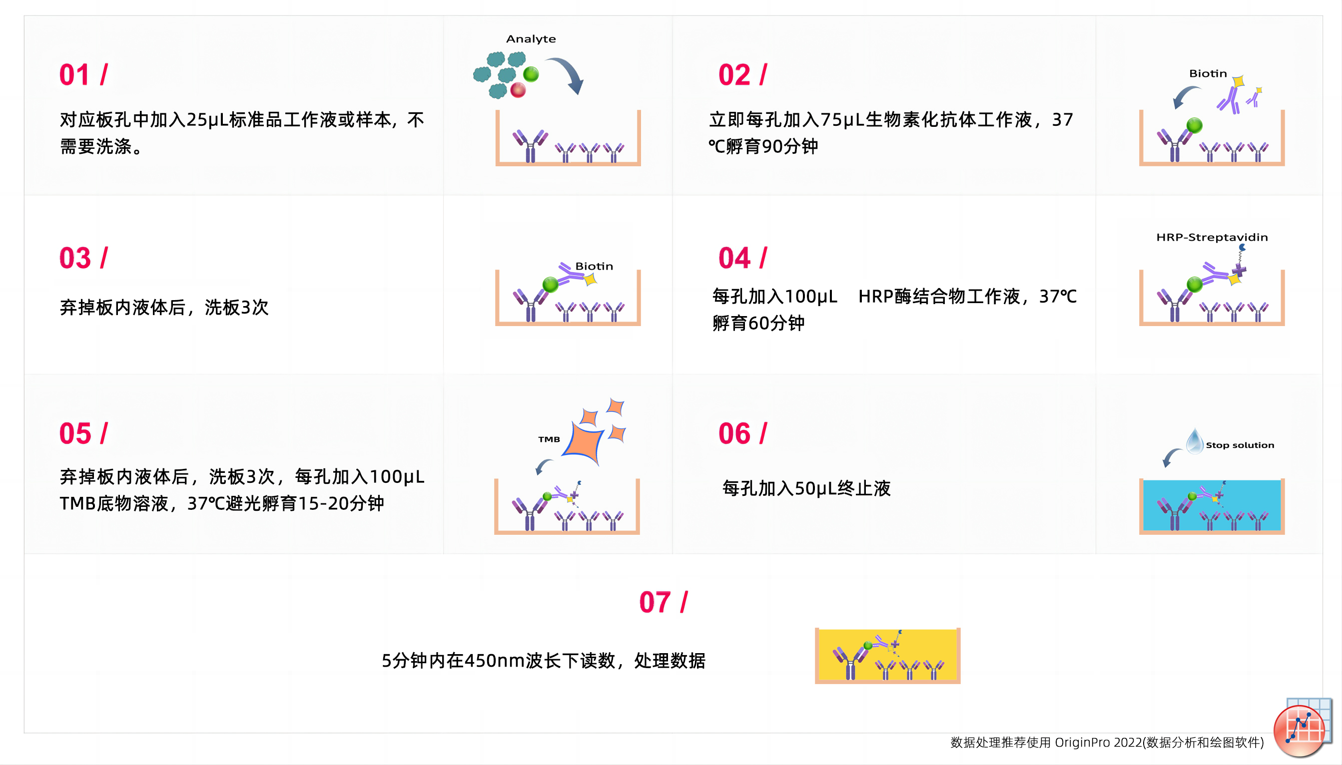 | 样品类型 | Serum, Plasma, Tissue homogenate and Other biological samples;Sample Volume=25μL | ||