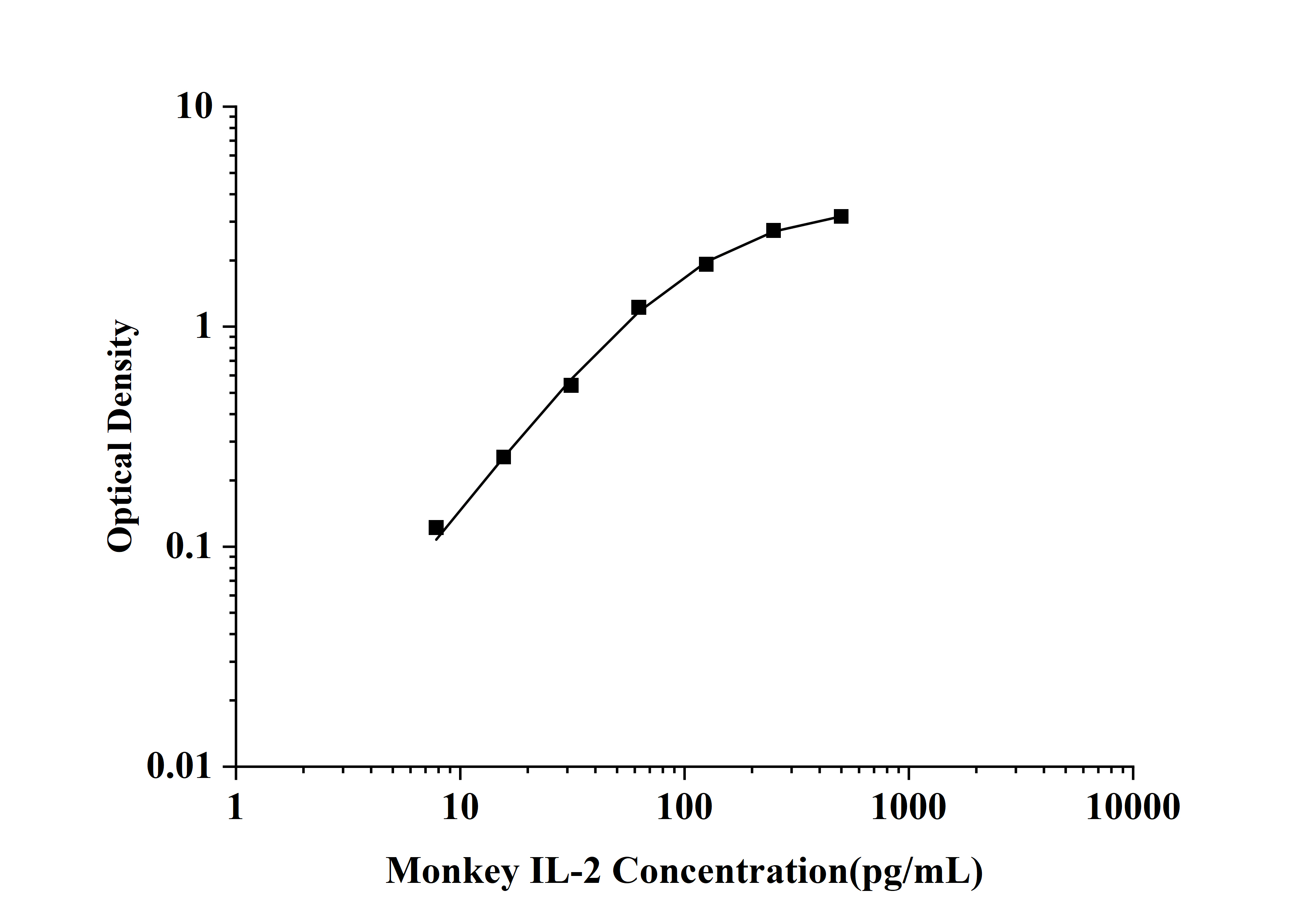 | 测试原理 | This ELISA kit uses the Sandwich-ELISA principle. The micro ELISA plate provided in this kit has been pre-coated with an antibody specific to Monkey IL-2 .Standards or samples are added to the micro ELISA plate wells and combined with the specific antibody. Then a biotinylated detection antibody specific for Monkey IL-2 and Avidin-Horseradish Peroxidase (HRP) conjugate are added successively to each micro plate well and incubated. Free components are washed away. The substrate solution is added to each well. Only those wells that contain Monkey IL-2 ,biotinylated detection antibody and Avidin-HRP conjugate will appear blue in color. The enzyme-substrate reaction is terminated by the addition of stop solution and the color turns yellow. The optical density (OD) is measured spectrophotometrically at a wavelength of 450 nm ± 2 nm. The OD value is proportional to the concentration of Monkey IL-2 You can calculate the concentration of Monkey IL-2 in the samples by comparing the OD of the samples to the standard curve. | ||