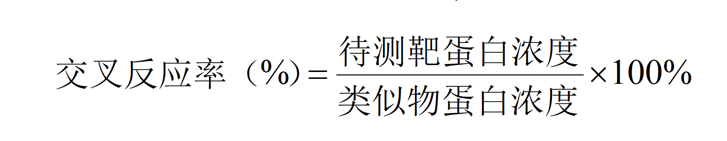 用试剂盒检测靶蛋白的相关类似物,并计算交叉反应率:
