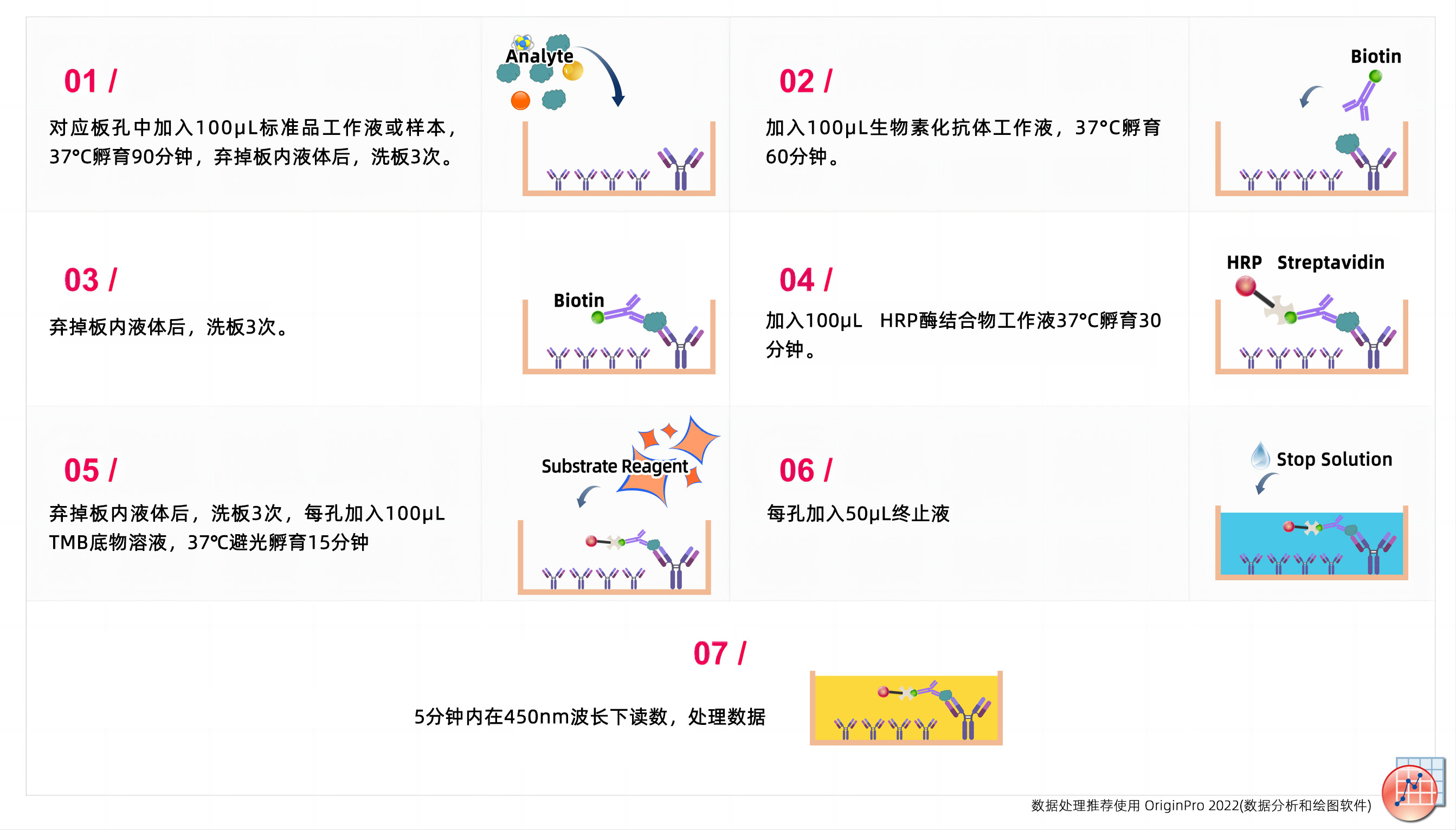 由于实验操作条件的不同(如操作者、移液技术、洗板技术和稳定条件等),标准曲线的OD值会有所差异。以下数据和曲线仅供参考,实验者需根据自己的实验建立标准曲线。