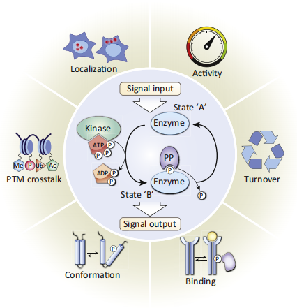 可逆蛋白磷酸化是一种分子开关机制[Humphrey,et.al]。